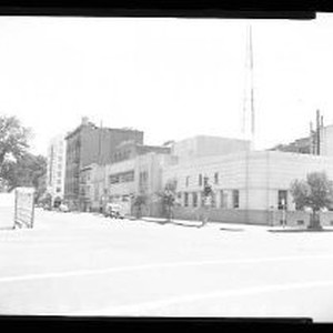 Street scene on the south side of I Street from 7th to 8th Streets showing KFBK Radio (Sacramento Bee owned) at 708 on the right end, the Bee's Auditorium is at 716, the Labor Temple to the left of the radio station and the Californian Hotel at 800 on the temple's left.