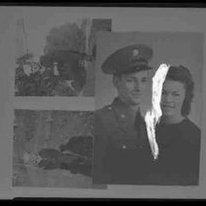 Three photos on one negative. One is of an unidentified soldier posed with a young woman. The other two are snapshots of an unidentified sailor. Copied from three photos, c. 1945.