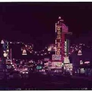 SERIES - two views of K street from the corner at 12th street, looking west. The Esquire Theater, The Studio Theater and the Times Theater can be seen along with other businesses on K Street. There are overhead Christmas decorations.