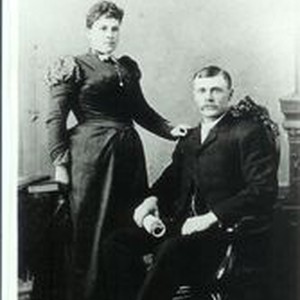 Photo--black and white: Formal portrait of Mamie (Crow) Whiteside and husband. Mamie was the daughter of Rancon and Elizabeth Ann (Gilliam) Crow--Gilliam family--Gilliam, Crow and Whiteside branches.