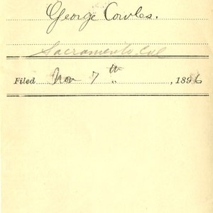 There are no known copyright restrictions associated with these digital images. We encourage the use of these images for personal, study, and educational purposes. Please credit “Courtesy of California State Archives.” The California State Archives and the Friends of California Archives cannot be responsible for any use of these images, or any liability resulting from their use. The Archives is interested in learning about any possible copyright restrictions and will gladly remove any image that is in violation.