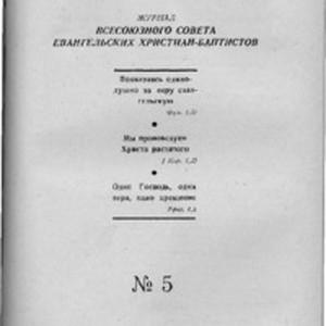 In 1945, The United Union of Evangelical Christians (EC) and Evangelical Christian Baptists (ECB) published the first issue of the Brotherly Herland. Iakov Ivanovich Zhydkov, chairman of the national (USSR) Union of Evangelical Christians and Baptists, became the chief editor. The editorial committee consisted of M.I. Golyaev, M.A. Orlov, and Alexander Vasi'yevich Karev. The leadership of the NUECB (all-National Union of Evangelical Christian Baptists) set the main task of the journal to form "Unity" in the midst of protestant churches of the moderate type. Thus, in the preface of the first issue of the journal it was stated, "The task of the Brotherly Herald is to work in such a way that unity might penetrate the bodies and blood of all brothers and sisters and become indestructible even going through tests and difficulties. May the Lord Himself make one united nation of two movements in His Name. Our mottos are the words from the Holy Scripture, they are dear to our hearts, 'We preach Christ crucified' (1 Cor. 1:23), 'Stand firm in one spirit, contending as one man for the faith of the gospel' (Phil. 1:27), 'One Lord, one faith, one baptism' (Eph. 4:5)". ❧ The second purpose of the periodical (which was to be published every other month) was to inculcate "correct training" of church members (correct from the spiritual as well as civic points of view). This purpose was successfully fulfilled by publication of texts of sermons, spiritually-edifying articles, official appeals and reports. The journal consisted of the following contents: 1. Religious and patriotic Evangelical Christians and Baptists and the Motherland. 2. Sermons and spiritual articles. 3. From history of the Evangelical Baptist movement in USSR. 4. From history of Christianity. 5. Biographies and necrologies of Evangelical Christians and Baptists. 6. Life and activity of NUECB. ❧ The address of the editorial office was in Moscow, Pokrovsky Boulevard, Maliy Vuzovsky Lane, 3. [Description English/roman)] В 1945 году объединенный союз ЕХ и ЕХБ издал первый номер периодического издания «Братский Вестник», главным редактором стал председатель Всесоюзного Совета евангельских христиан и баптистов Я.Жидков. В редакционную комиссию вошли Голяев М.И., Орлов М.А., Карев А.В. Основной задачей журнала руководство ВСЕХБ видело в формировании «Единства» среди протестантских церквей умеренного типа. Так в предисловии к первому номеру журнала писалось: Задача «Братского вестника» - так повести свою работу, чтобы дело единения вошло, в плоть и кровь всех братьев и сестер, чтобы оно стало нерушимым даже при испытаниях и трудностях, и чтобы теперь уже Сам Господь соделал из двух течений один народ во имя Свое. Нашими лозунгами являются дорогие всем нам слова Св. Писания: ‹Мы проповедуем Христа распятого› (1 Кор. 1, 23) ‹Стойте в одном духе, подвизаясь единодушно за веру евангельскую› (Фил. I, 27) ‹Один Господь, одна вера, одно крещение› (Ефес. 4, 5)». ❧ Вторая цель этого периодического издания которое планировалось издавать один раз в два месяца было прививать «правильное воспитание» членов церкви «как с духовной, так и с гражданской точки зрения» . Данная задача достаточно успешно выполнялась посредством публикации проповедей, духовно-назидательных статей, официальных обращений и отчётов. Журнал состоял из следующих рубрик: 1. Религиозно-патриотический Евангельские Христиане и Баптисты и родина. 2. Проповеди и духовные статьи. 3. Из истории Евангельско-Баптистского движения в СССР. 4. Из истории Христианства. 5. Биографии и некрологи Евангельских Христиан и Баптистов. 6. Жизнь и деятельность ВСЕХИБ. 7. Жизнь общин на местах. 8. Корреспонденция. ❧ Адрес редакции находился в г. Москве, Покровский бульвар, Малый Вузовский пер., дом. 3." [Description (original non-English/roman language/script)]