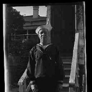 View of two sailors posed in front of a house. Handwritten on 5471. "Gob Ed 6/15/19"