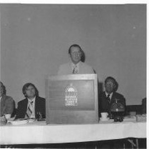 Photo of Edward McAdams speaking at a Chamber meeting.