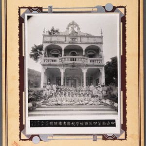 This school library, partly funded by Y. C. Hong, was located in Sai Ah Village, Zhongshan County, China. Sai Ah is the ancestral village of the Hong family. Hong family papers. The Huntington Library, San Marino, CA.