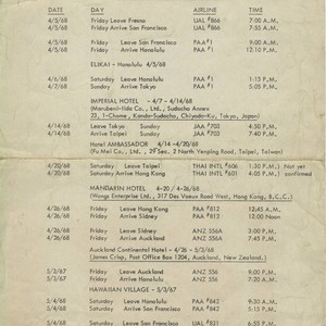Text / Itinerary for 1968 East Asia vacation