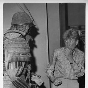The actor Sterling Holloway, perhaps best known for his voice work for Walt Disney Corp., who was in Sacramento to appear at the Music Circus in "A Funny Thing Happened on the Way to the Forum." He is clowning around at (probably) the Crocker Art Museum.