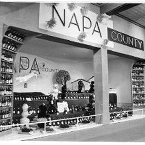 View of Napa County's exhibit booth at the California State Fair. This was the last fair held at the old fair grounds