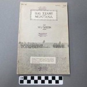 Book, "Big Teams in Montana" by M.L. Wilson (Milburn Lincoln), Montana Extension Service in Agriculture and Home Economics, April 1925. Stamped: "Geo. A. Scott, Livestock Statistician, Salt Lake City"