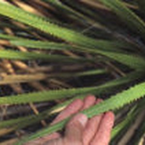 A close up of the leaf spines of a green sotol plant growing in Slaughter Canyon.