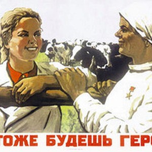 Soviet social poster. Caption reads, "Ты тоже будешь героем! / Ty tozhe budesh' geroem!", meaning, "You will be a hero, too!". [Description English/roman)]