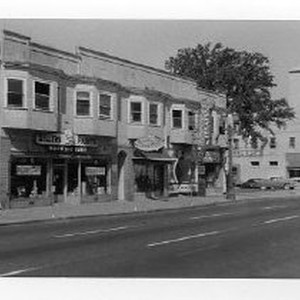 Street scene on the northside of J Street near 13th Street. A wide view shows Siller Paint Company, Marine Garden Seafood Grotto, Club Canteen, and Dutch Boy Paints.