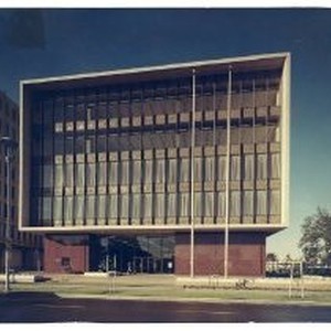 SERIES. View of the front of the Wells Fargo Bank building on the Capitol Mall just after completion. Architect - Harry J. Devine, 1012 J St., Sacramento.