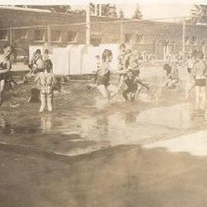 Children standing and splashing in wading pool at the Clunie Pool at McKinley Park.
