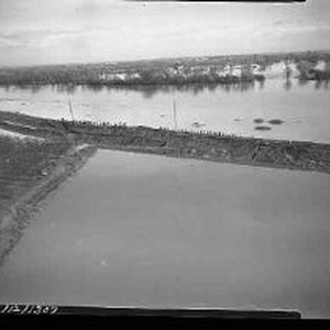 Flood - Yuba, Marysville, Sac. People along levee.(Aerial) 1955