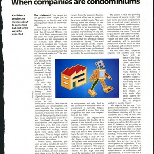 Article by Charles Handy on how employers' perception of employees as assets will turn corporations into project group networks, or a corporate condominium, and the possible results of that transformation, 1993; Charles Handy Papers; Box 20, Folder 7; 1 page
