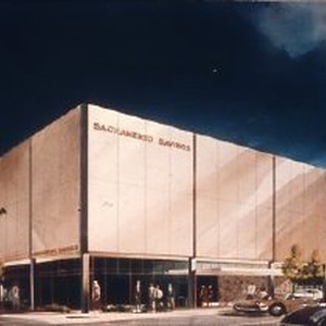 Capitol Mall Redevelopment Project renderings of buildings in the district bounded by Capitol Ave. 4th, 5th and L Streets. This views shows the Sacramento Savings and Loan Building Proposal