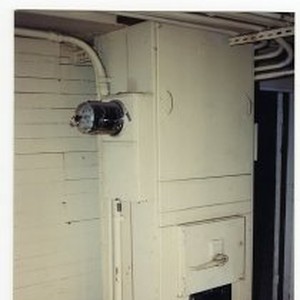 Interior view of the Merrium Apartments before demolition showing electrical system.