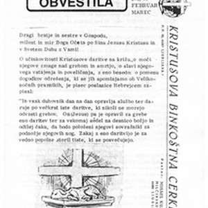 Bilten Kristove pentekostalne crkve u Ljubljani. Broj iz veljače i ožujka 1989. godine koji sadrži kratak uvodnik, a zatim izvješća o tome što se događalo u crkvi tijekom siječnja i obavijesti o tome što će se događati u crkvi tijekom veljače i ožujka. [Description (original non-English/roman language/script)] Bulletin of the Christ's Pentecostal Church in Ljubljana for February - March, 1989, containing an editorial, report on what went on in the church during January and the notices what will be been happening in the church in February and March. [Description English/roman)]