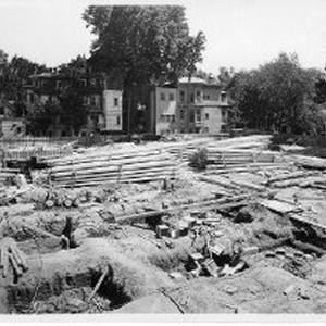 Exterior view of the construction site for the new Sacramento Post Office and Federal Courthouse at 805 I Street between 8th and 9th Streets. This view is facing northeast and a general view of the progression of the project.