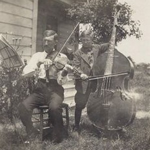 Photo, black and white: John F. Triggs on fiddle and son Glenn "Dutch" Triggs on base fiddle. J. F. Triggs (John Francis) (1874-1951) Was Sebastopol merchant from 1915 to 1951. His businesses included a bicycle and repair shop to car dealership to auto parts and machine shop. And was also the town's locksmith. Triggs was interim town trustee replacing Scudder when Scudder went to state rep. Triggs had a dance club playing fiddle in his own group. Tickets were sold to Friday night dances held in Lincoln Hall and then above the Odd Fellows. Triggs was married to Arabelle Smith Triggs. Children: Ruth, Arthur, "Dutch" and Delbert Ernest "Deb." Triggs was also well known for his large gun collection.