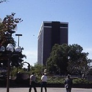View looking west along the K Street Mall from 4th Street. Reconstruction work is under way. The Holiday Inn is in the center and the Indo Arch on the left
