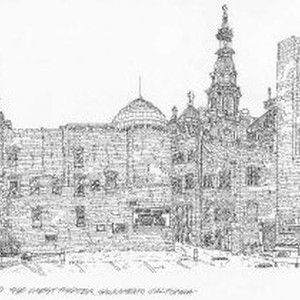 Original pen and ink drawing of Behind the Crest Theater in Sacramento