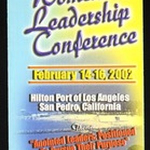 Flier, registration form and envelope for Woman in leadership conference, Southern California, Department of Women, Church of God in Christ, 2002 February 14-16. [Description English/roman)]