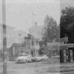Double exposed image of residential structures near Crocker Art Gallery.