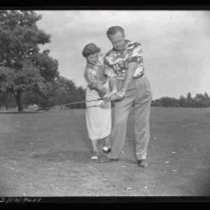 5/27/51 Barbara Romack helps Buz Pendleton with his golf swing.