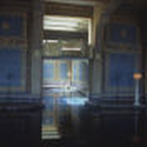 Ornate blue mosaic tile covers the walls of the indoor pool at Hearst Castle.