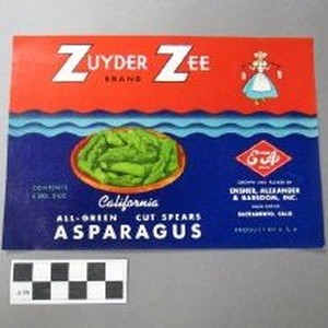 Label, Zuyder Zee Brand California All-Green Cut Spears. Asparagus.