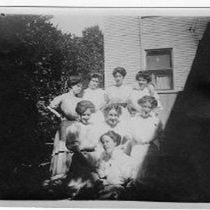 Exterior view of Mistletoe Club group of women. Donor's sisters are among these women, Myrtle Chamberlain and Ethel Beach.
