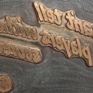 Print plate with inscription: "You can't tell the players without a scorecard!" Also has a circle with 10 C."