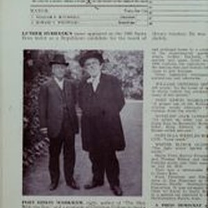 Slide--black and white: Newspaper article with photo of Luther Burbank and Edwin Markham. Markham authored "The Man with the Hoe" about Burbank.