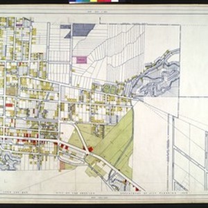 WPA Land use survey map for the City of Los Angeles, book 2 (Tujunga), sheet 19. Includes: [Title page and] legend [for Book] no. II Composite index to Land use map books [for Book 2] Index to Book no. 2. Land use survey - City of Los Angeles. Department of City Planning. These maps were prepared with the assistance of the Works Progress Administration project no. 665-07-G-226 through 1939 to 1940. The land use data contained herein was compiled from a survey made with the assistance of the Civil Works Administration project no. 642, State Emergency Relief Administration project nos. 1-F2-318 and 1-F2-318A and Works Progress Administration project nos. 65-3-4377, 1101-2011 and 465-03-3-106. This survey functioned from Dec. 18, 1933 to May 8, 1939 and covers approximately 460 square miles within the boundary of the City of Los Angeles. It includes 347 colored drawings bound in 10 volumes of which this is no. II. The land use survey was supervised by the Zoning Engineer. The land use maps were supervised by the Illustrative Planning Engineer for the Sponsoring Department.