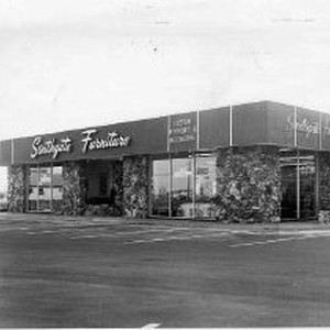 "This is the rebuilt Southgate Furniture store opened last month. It was gutted by a Thanksgiving Day fire last year whch followed the crash of a light plane at 6630 Franklin Boulevard"