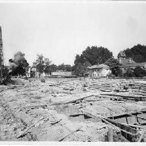 Exterior view of the construction site for the new Sacramento Post Office and Federal Courthouse at 805 I Street between 8th and 9th Streets. This view is facing northwest and a general view of the progression of the project.
