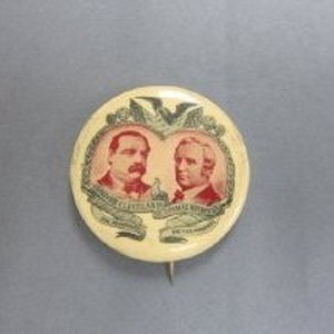 Reproduction. Portraits w/pink hue on cream background. "Grover Cleveland for President Thomas Hendricks for Vice President" Stamped on edge: Art Fair, NY, 1967