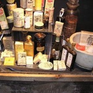 Pharmaceutical or apothecary bottle reads WAIT'S FAMILY REMEMDIES COUGH SYRUP