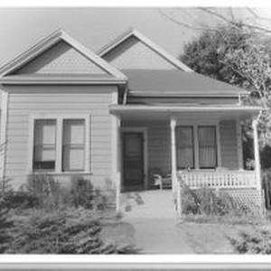 Photo, black and white: Sebastopol house at 7148 Calder Avenue a Queen Anne built in 1895 in the Calder Addition. House photographed in 1993 by Evelyn McClure for her book "Sebastopol, California : History, Homes and People."