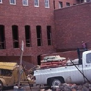 Old Sacramento. View of the Pacific Stables building on the corner of Second and L Streets. This view is of the site as it is prepared before reconstruction.