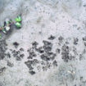 Raccoon tracks formed in the soft mud near a pond.