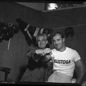 5/8/1955 - Rocky Marciano trains in Calistoga, CA - Marciano poses for photo with promoter. 5 of 5