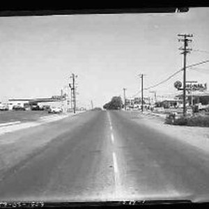 SERIES of four negatives relating to an automobile accident. Two are of the accident scene at Auburn Blvd. and Cripple Creek Rd. and two are of an apartment building at 4201 22nd Street. The photos were taken for State Farm Insurance Co. Serveral service stations can be seen in one negative as can an advertising sign for Lucky Lager Beer.