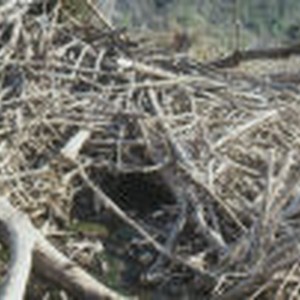 Close-up of the exposed opening of a beaver lodge in Cajon Creek.