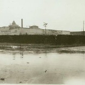 SERIES. View of a plumbing supply company at northwest corner 23rd and S Sts. One image shows flooded street in foreground.