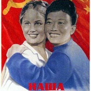 Soviet poster dedicated to the International Women's Day. Captions reads, " Hаша дружба нерушима! (bottom) Да здравствует Международный Женский День! (top) / Nasha druzhba nerushima! (bottom) / Da zdravstvuet Mezhdunarodnyi Zhenskii Den'! (top)", meaning, "Our friendship is indestructible. Long live the International Women's Day". [Description English/roman)]
