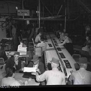 Folsom Prison series - inside building showing license plate factory with inmates working. 5 of 13 - 4/9/50