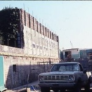 Old Sacramento. View of the Pacific Stables building on the corner of Second and L Streets. This view is of the site during reconstruction.